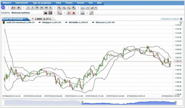 ( le meme graphique avec les bandes de bollinger ) et comme par magie la courbe but entre les extreme des bandes de bollinger.